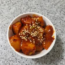 국물이 자작하게 남을 때 불을 약불로 낮추고 올리고당 일부를 한 번 더 돌려 넣으며 팬을 넓게 흔들어 주세요 점성이 생긴 소스가 감자 표면을 매끈하게 감싸며 반짝임이 살아나요