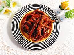 완전히 숙성된 고추장아찌는 꺼내어 가위로 2~3등분으로 자릅니다. 기호에 따라 깨를 뿌리거나 들기름을 살짝 두르면 매운맛이 부드럽게 중화돼요 🌶️✨