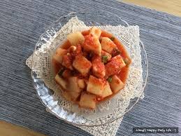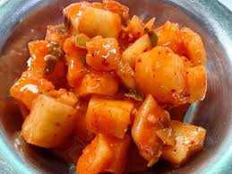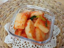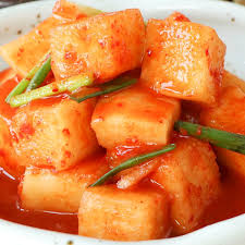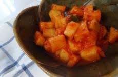 깍두기에 배를 잘게 썰어 넣으면 단맛이 더 풍부해지고 김치 특유의 알싸한 맛이 순해집니다. 멸치액젓 대신 까나리액젓을 사용하면 감칠맛이 부드러워요.