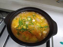 끓는 육수에 된장을 체에 걸러 풀어줍니다. 이렇게 하면 된장이 뭉치지 않고 국물이 더욱 깔끔해집니다. 고추장은 소량만 넣어 감칠맛을 더하고, 너무 많이 넣지 않도록 주의하세요.