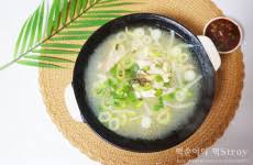 밥은 말아 먹고, 당면이나 소면은 따로 삶아 찬물에 헹군 뒤 그릇에 담고 뜨거운 국물을 부어 주세요. 전분 면은 국물에 바로 삶으면 탁해질 수 있으니 반드시 분리 조리! 그릇에 국물을 붓고 찢은 살코기·파·후추를 올려 내며, 앞서 만든 소금간장 양념으로 각자 간을 맞춥니다.