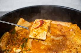 두부가 팔팔 끓는 동안 숟가락으로 살짝 떠보면 가장자리가 붉게 물든 걸 볼 수 있는데, 그게 제대로 스며든 증거예요 💛