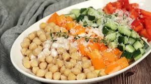 삶은 병아리콩 1/2컵, 양상추, 토마토, 오이, 올리브유, 레몬즙을 넣고 가볍게 버무리면 포만감 높은 건강 샐러드가 완성됩니다. 닭가슴살이나 아보카도를 추가하면 한 끼 식사로 충분해요 🥬🍅