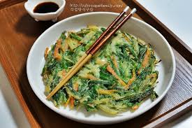 너무 되면 질기고, 너무 묽으면 흩어지니 ‘국자에서 천천히 떨어지는 농도’가 이상적이에요 🥣✨ 부추와 채소를 넣고 살살 섞습니다.