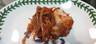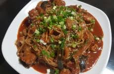 전분 코팅한 아귀를 조심히 얹고 소스를 끼얹으며 중불에서 6분 정도 졸입니다. 젓가락으로 세게 뒤적이지 말고 팬을 앞뒤로 흔들어 굴리듯 움직이면 살이 깨지지 않아요.
