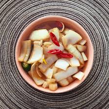 A. 절임액이 뜨거울 때 부었거나 너무 얇게 썬 경우예요. 반드시 식힌 후 붓고 1cm 두께로 썰어주세요.