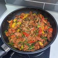 불을 중약불로 줄이고 팬을 흔들며 양념을 골고루 입혀주세요. 양념이 너무 졸아들면 물을 소량 추가해 조절합니다. 마지막에 한 번 더 맛을 보고 간을 맞춘 뒤 불을 끄면 완성입니다.