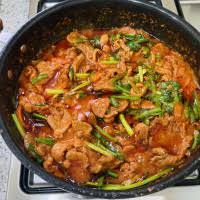 불을 중약불로 줄이고 팬을 흔들며 양념을 골고루 입혀주세요. 양념이 너무 졸아들면 물을 소량 추가해 조절합니다. 마지막에 한 번 더 맛을 보고 간을 맞춘 뒤 불을 끄면 완성입니다.