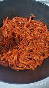 - 매콤함을 줄이고 싶다면 고춧가루를 1/2큰술로 줄이고, 고추장은 그대로 두면 색은 예쁘게 나와요.