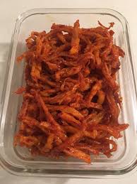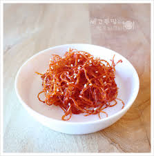 오징어채는 색이 너무 누렇지 않고 윤기가 있으며, 손으로 만졌을 때 가루가 많이 떨어지지 않는 것이 좋아요. 봉지를 열었을 때 비린내가 강하지 않고 고소한 건어물 향이 나면 신선한 편입니다.