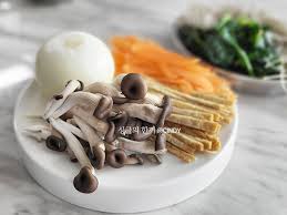 시금치는 줄기 부분이 얇고 잎이 푸른색인 것을 고르세요. 버섯은 향이 강한 표고버섯이 가장 좋지만, 느타리버섯으로 대체해도 됩니다 🍄