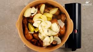 이 단계에서 감자에 간이 배고, 닭은 속살까지 짭짤달큰한 맛이 들어가기 시작합니다. 바닥이 달라붙지 않도록 3분 간격으로 넓게 한 번씩만 저어주세요 🍲⏱️