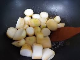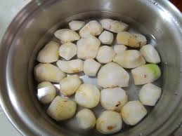 껍질을 모두 벗기고 적당한 크기로 썰어 소금물에 잠시 담가두었다면, 요리에 넣기 전 한 번 더 깨끗한 물에 헹궈주는 것이 좋아요.
