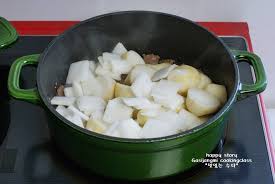 썰어놓은 토란은 갈변을 막기 위해 준비해둔 약한 소금물에 담가 두면 색도 예쁘게 유지되고 요리했을 때 특유의 텁텁한 맛이 조금 더 줄어든 느낌을 받을 수 있습니다.
