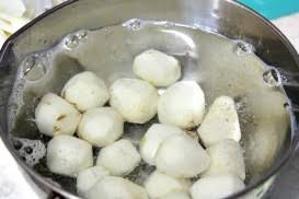 물이 끓기 시작하면 중불로 줄이고 약 십분 정도만 삶아 주세요. 완전히 익힐 필요는 없고 겉껍질만 살짝 말랑해질 정도면 충분합니다.