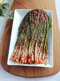 파김치가 완성되면 통째로 꺼내 한 줄씩 접시에 담아보세요. 파의 초록빛과 붉은 양념이 어우러져 보기에도 예뻐요. 냉장 보관 시 3주까지 아삭하게 유지되며, 시간이 지나면 김치전이나 김치찌개용으로 활용하면 좋아요 🍲