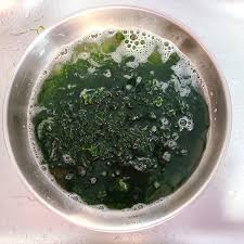 파래는 찬물에 손으로 살살 흔들어 여러 번 헹궈주세요. 이때 비벼 씻지 말고 흔들듯이 씻어야 파래 조직이 상하지 않습니다.