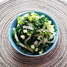물기를 제거한 파래는 너무 길지 않게 가위나 칼로 잘라줍니다. 한입에 들어갈 정도로 자르면 먹기 편하고 양념도 고르게 배어요. 양파는 최대한 얇게 채 썰어 찬물에 잠시 담갔다 사용하면 매운맛이 줄어듭니다.