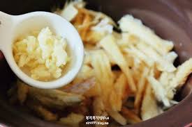 마늘을 함께 넣어 볶으면 잡내가 사라지고 구수한 향이 진해져요. 이때 너무 센 불에서는 황태가 탈 수 있으니 주의하세요. 참기름과 황태의 조화가 국물 맛을 좌우한답니다 🍯